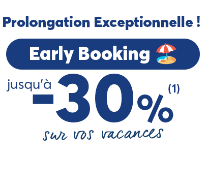 Avec notre offre Early Booking, profitez de jusqu’à 30%(1) de réduction sur votre séjour mais aussi: